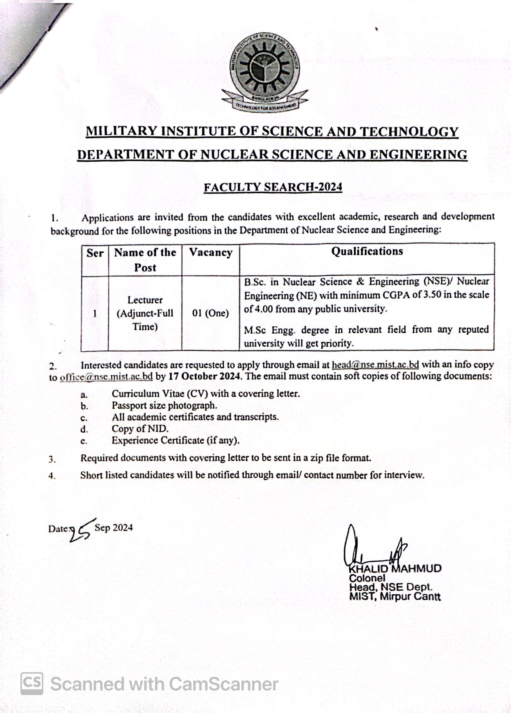 Employment Oppurtunity in Department of NSE