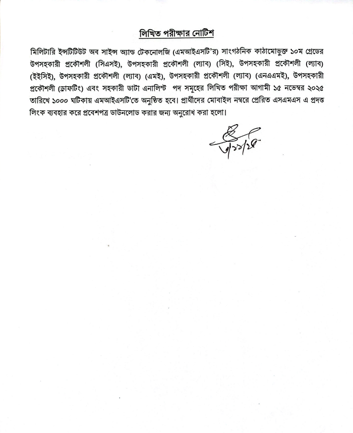 Notice For Written Exam: 10th Grade Civil Employee Recruitment
